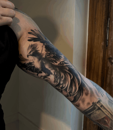 Tatuaże odwzorowane z fotograficzną dokładnością. Cienie, tekstury, detale - każdy element dopracowany tak, by wyglądał jak obraz zaklęty pod skórą. Mocny, charakterystyczny styl.