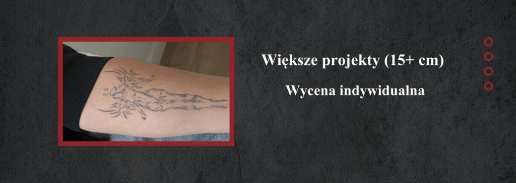 Małe tatuaże zaczynają się od 200 zł, średnie od 300–400 zł.